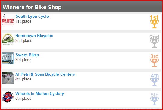 Thanks to all of our customers for voting us one of the best bike shops in south east Michigan. You helped us earn 2nd